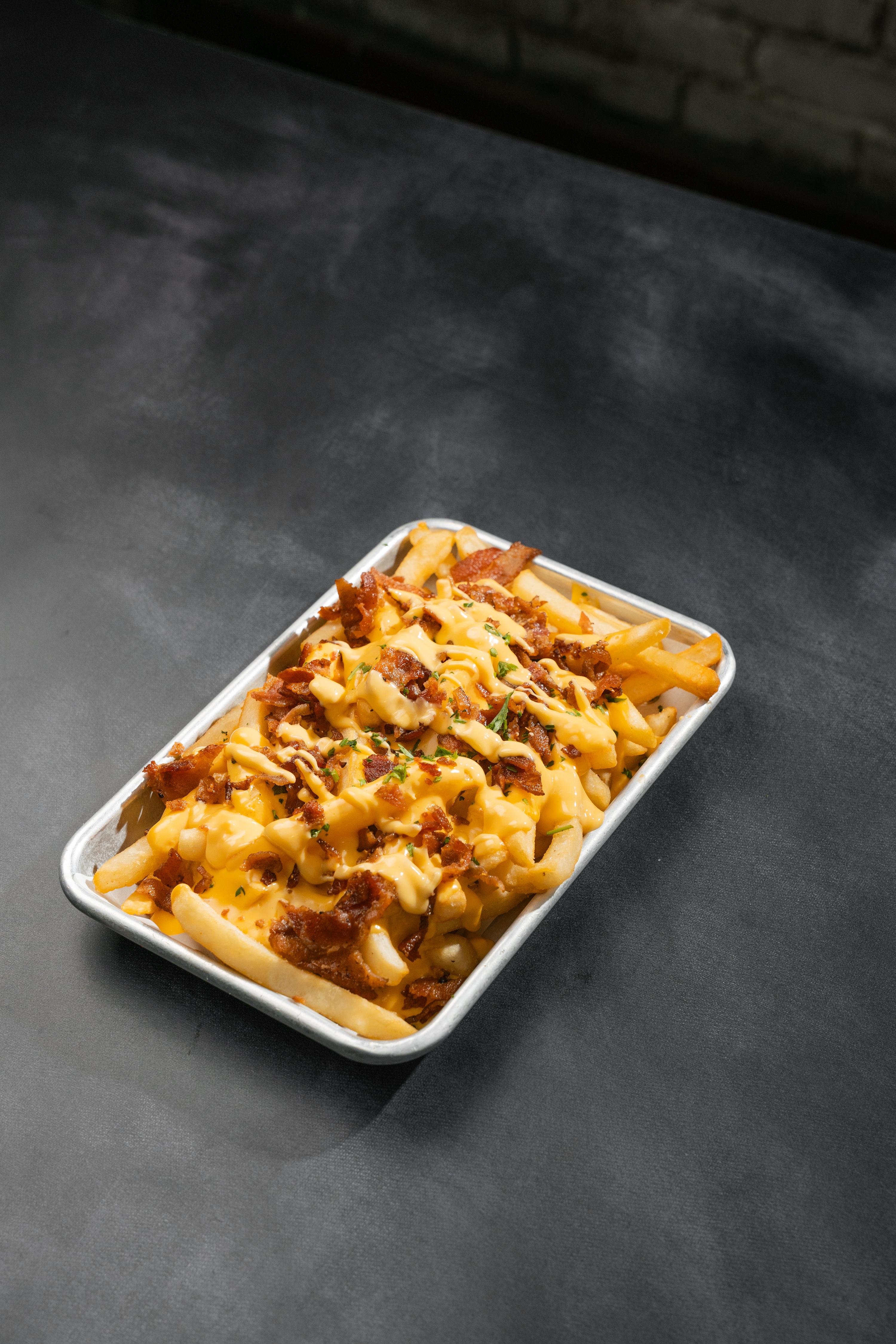 Our classic Fries with Cheese Sauce and Chopped Fresh Parsley for Garnish.